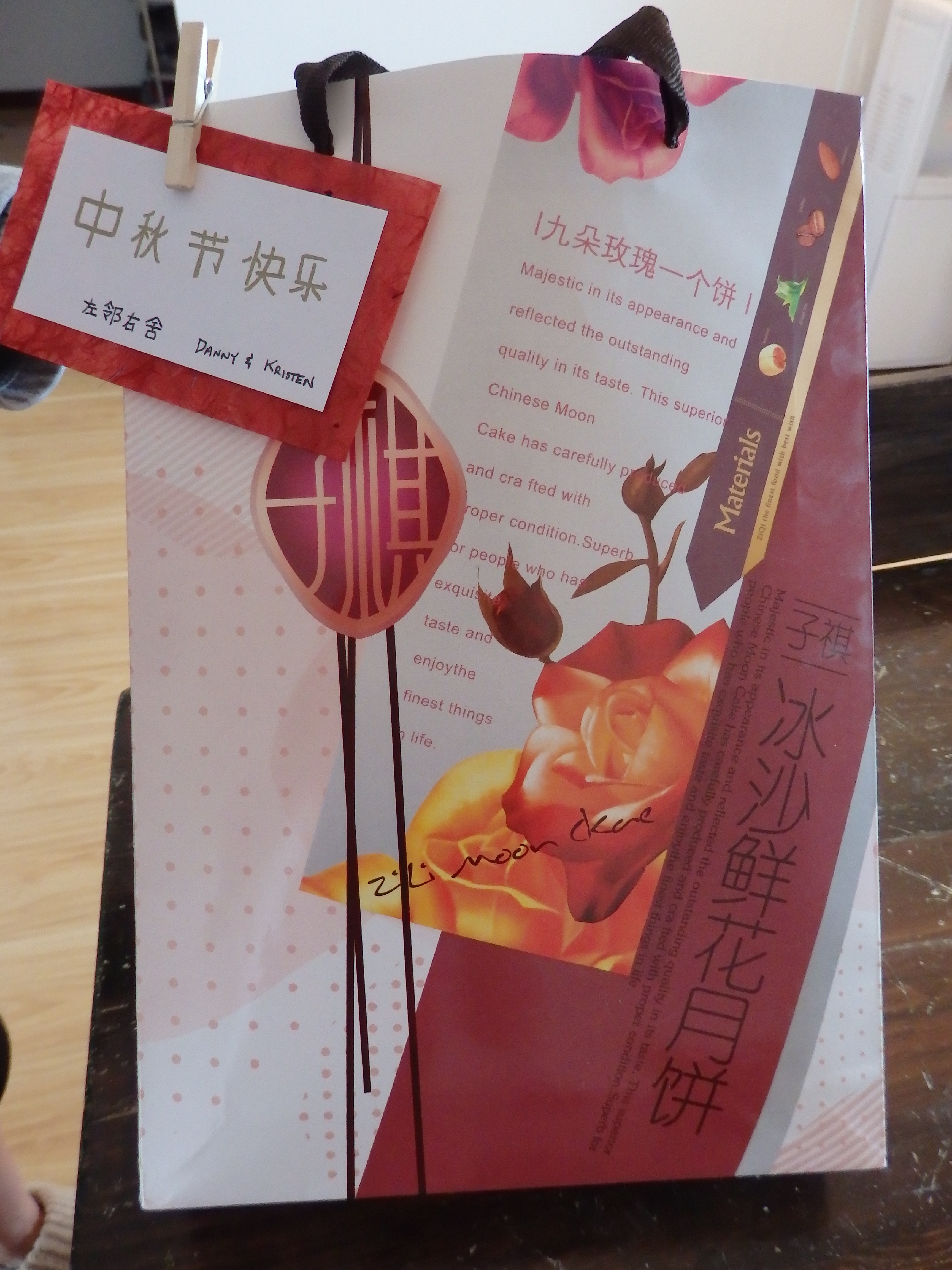 It is custom to give gifts to friends and loved ones. We decided to give moon cakes to our neighbors:
