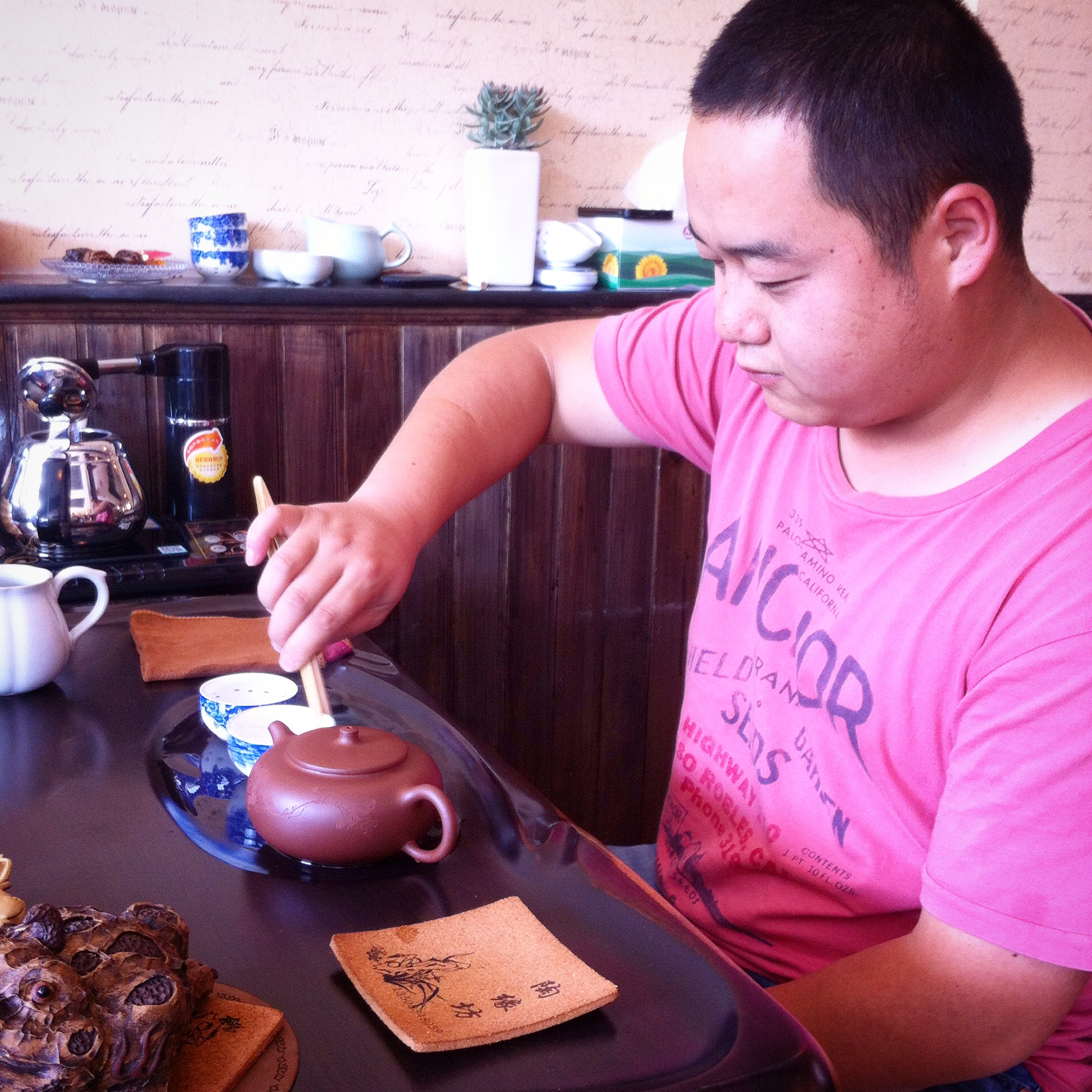 First order of business though: tea. Then more tea. Then more tea. It’s Yu’s hobby, plus they just drink a ton of it here anyway. We spent 2 1/2 hours just drinking tea with him and 2 of his friends before they even left to go to the iPhone repair place.