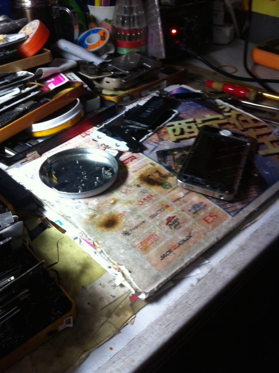 Eventually Yu, Danny, and the other 2 guys drove downtown to the repair place. This whole process took another 2 hours because the American thumb button thing is larger than the Chinese one, so the repair man had to try over and over until our Chinese friends were satisfied with the quality. Then, because it took longer than expected, our friends bargained the price down to just 260 kuai (about $43 USD). I was expecting to pay over $100.