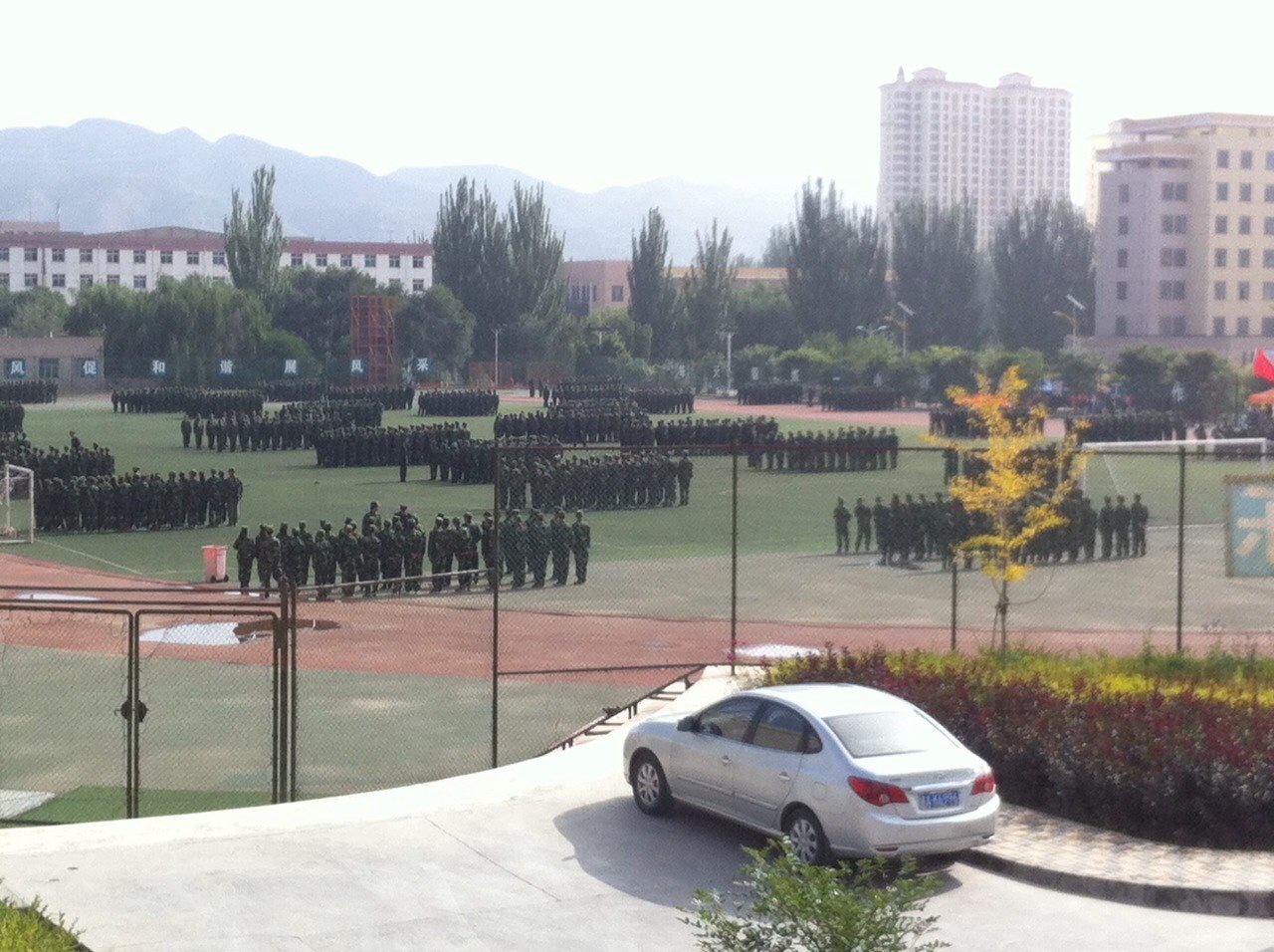 Full moon this morning for the ROTC show. Most pre-potty-trained kids wear these pants … parents just hold them over a bush (or not).