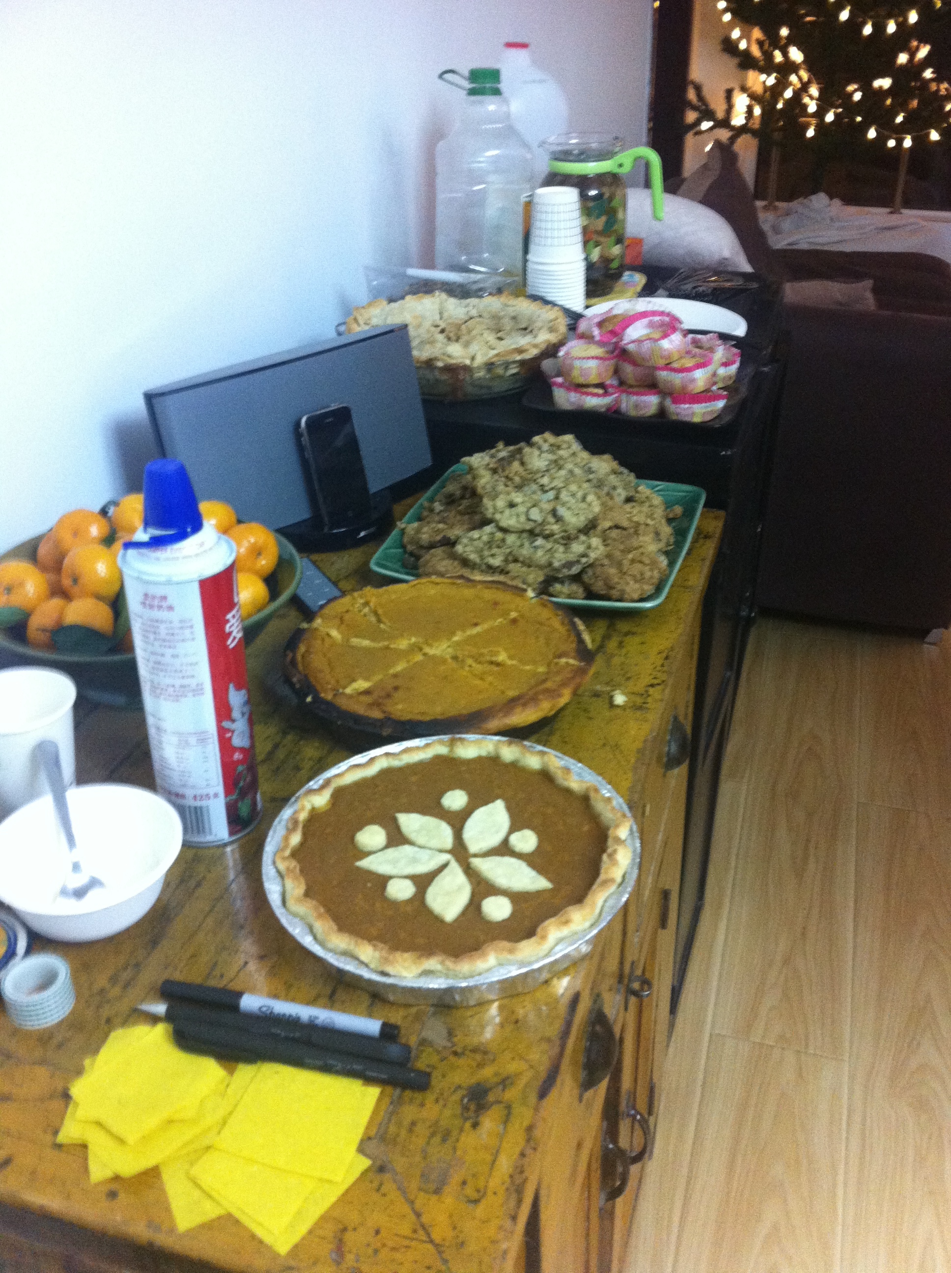 Dessert 🙂 The pen and yellow paper were there for people to write what the were thankful for — we posted it on our wall in the dining room.