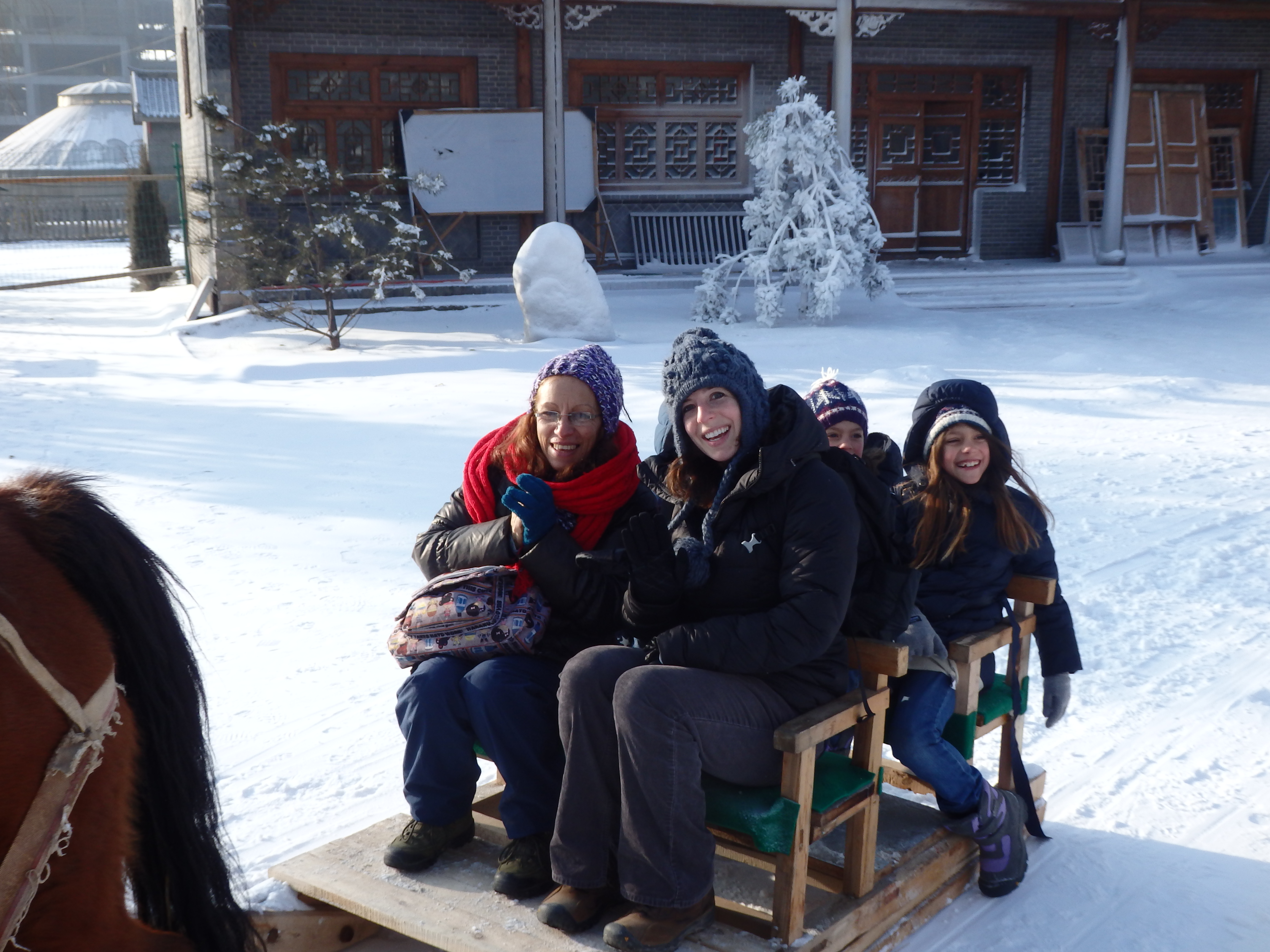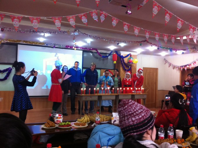 One unanticipated Christmas blessing came from our university. They hosted a Christmas themed party for all of the foreign students, which included food, games (Danny participated, unaware of the amount of Chinese language that was needed to play), and a speech from the president of the University. They also bused us to a nearby town for some fun in the snow that included sleigh rides, snow tubing, horseback riding, traditional “Tu” people dancing lessons, and food in a yurt. We had a blast. Our school did a great job of making us feel loved!