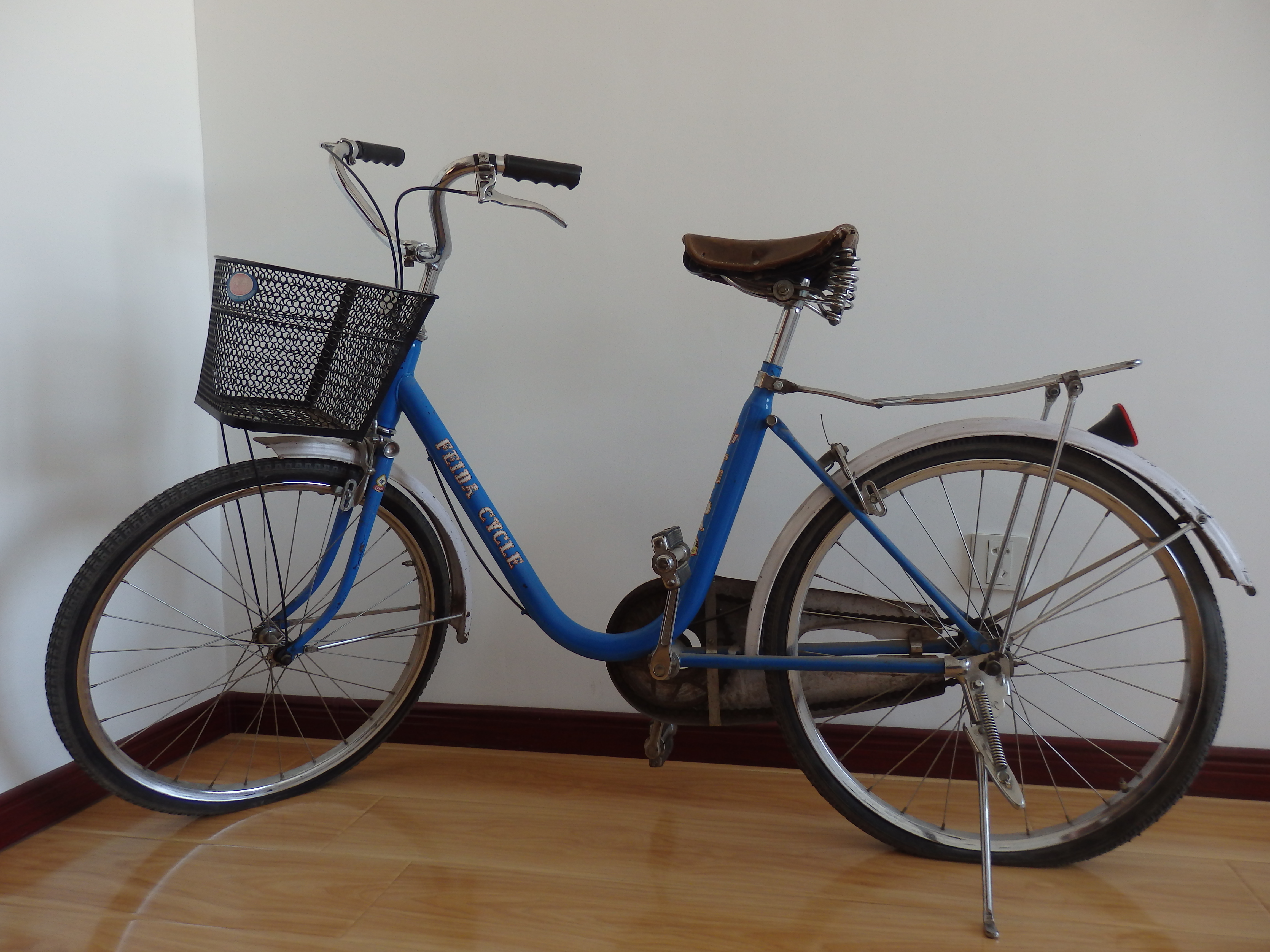 Because I haven’t once been able to ride it. I’m not too picky and I don’t mind that it is a used bike (I actually prefer it …less chance of getting stolen), but he bought me a bike that is broken. As you can see from the picture, the bike needs some serious TLC. Both tires are blown out and need to be replaced, the chain is rusted, and the seat is falling apart. He paid $80 kuai (about $13 USD) and swears that now that we live in China, he is a handy-man and can fix it up to look brand new. The bike hasn’t moved an inch, and we still don’t even know where to get the right parts…