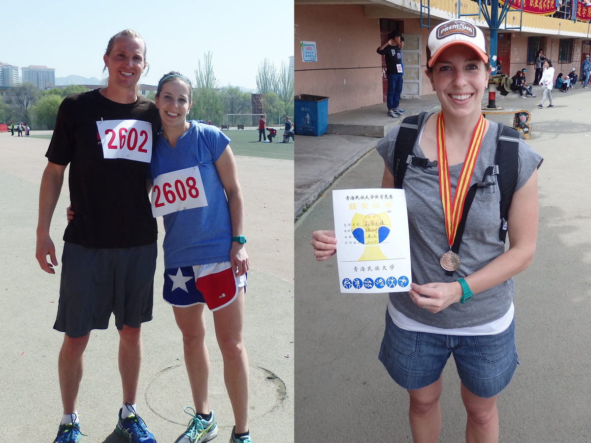 The second big event of the semester occurred a couple of weeks ago. Every school in China, from elementary through college, holds their own track & field competition. All students are “highly” encouraged to sign up for an event…or 3! So I ran the 100m dash, 4x100m relay, and threw the shot-put. That’s right…shot put. Kristen ran the 100m dash. We thought that the shorter races would be a better fit for us! The embarrassment of not training would be over soon.